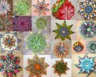 Ela passeia em suas tendências criativas e nunca fica parada, vai pesquisando e fazendo, reiventando e fazendo ... Está sempre em movimento. Uma hora é tear, outra é patchwork, daí faz bolsas, blusas, usa linhas, lãs, feltros... E o papel, com o qual trabalha muito bem. Tem grande habilidade para usar a técnica do origami e gosta, especialmente, de fazer mandalas. Diria que é uma expert em mandalas. E ela recomenda como uma atividade terapêutica, além do olhar sobre a mandala trazer harmonia interior.